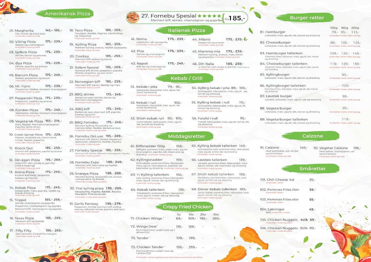 Fornebu Pizza is more than just a restaurant; it’s a gathering place for flavors, friends, and family. Whether you're in the mood for a classic pizza or a hearty kebab, you’re sure to leave with a smile and a satisfied palate. It’s time to indulge in the deliciousness that awaits you at Fornebu Pizza.