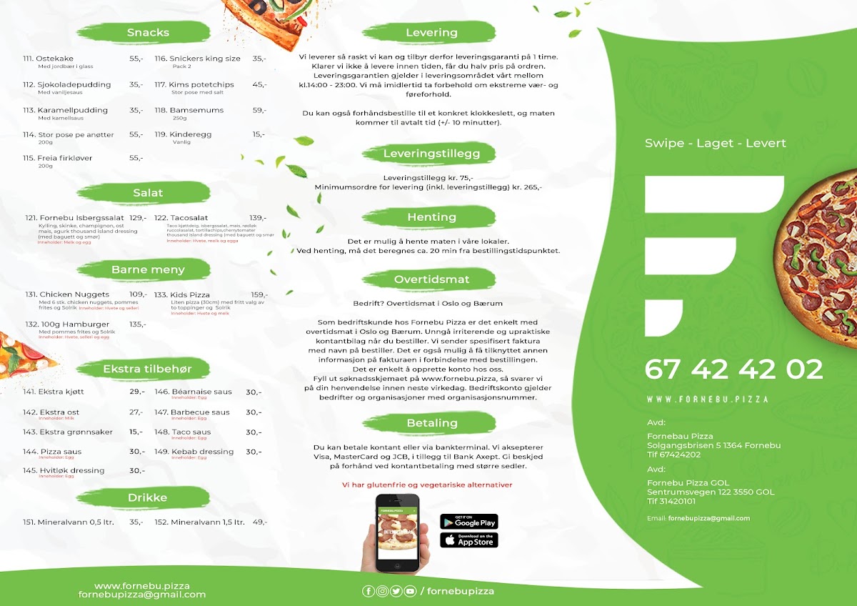 Welcome to the delightful world of Fornebu Pizza, where the crust meets creativity in every slice. Located at Solgangsbrisen 5 in the picturesque Fornebu, Norway, this culinary gem offers an array of tasty options that promise to satisfy both pizza lovers and hungry diners alike.